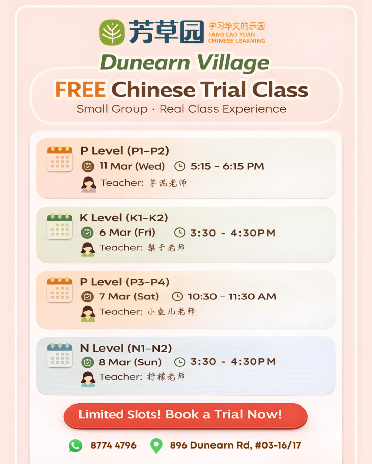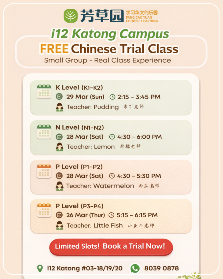 Fang Cao Yuan Now Open for New Parents – FREE Chinese Trial Classes Available!