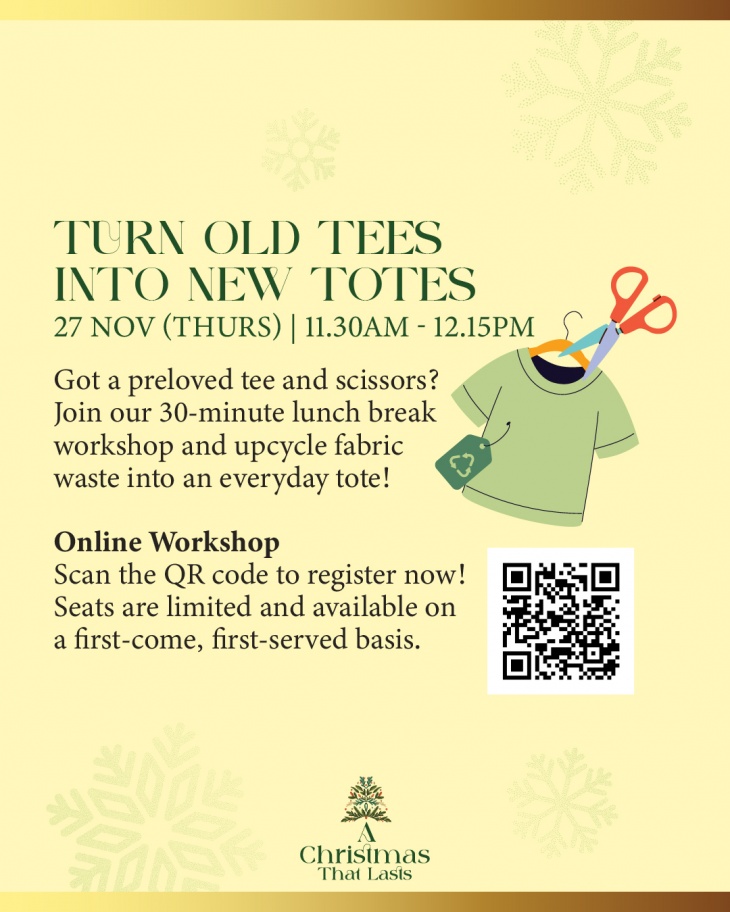 - Tees-to-Totes Workshop: Turn your old tees into reusable tote bags. Link in bio to register