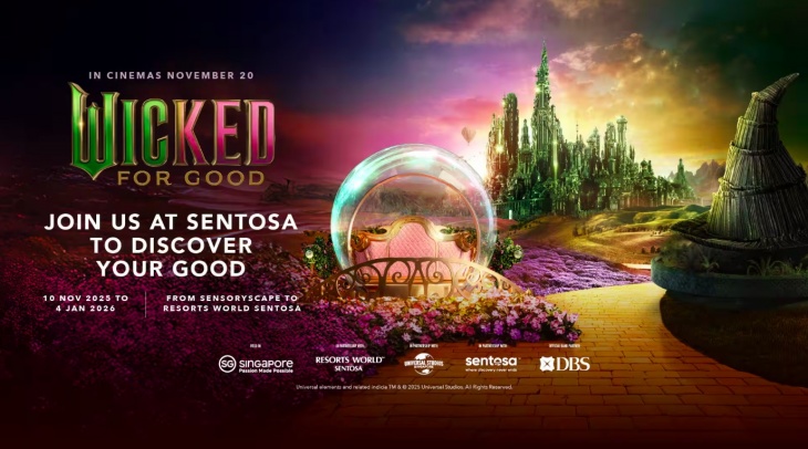 Follow the Yellow Brick Road along Sentosa Sensoryscape all the way to the Emerald City in Resorts World Sentosa, and experience the world of Wicked: For Good as the Lake of Dreams and Universal Studios Singapore are transformed, bringing the wonders of the film to life.