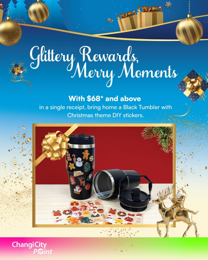 - With $68* and above in a single receipt, bring home a Black Tumbler with Christmas theme DIY stickers.